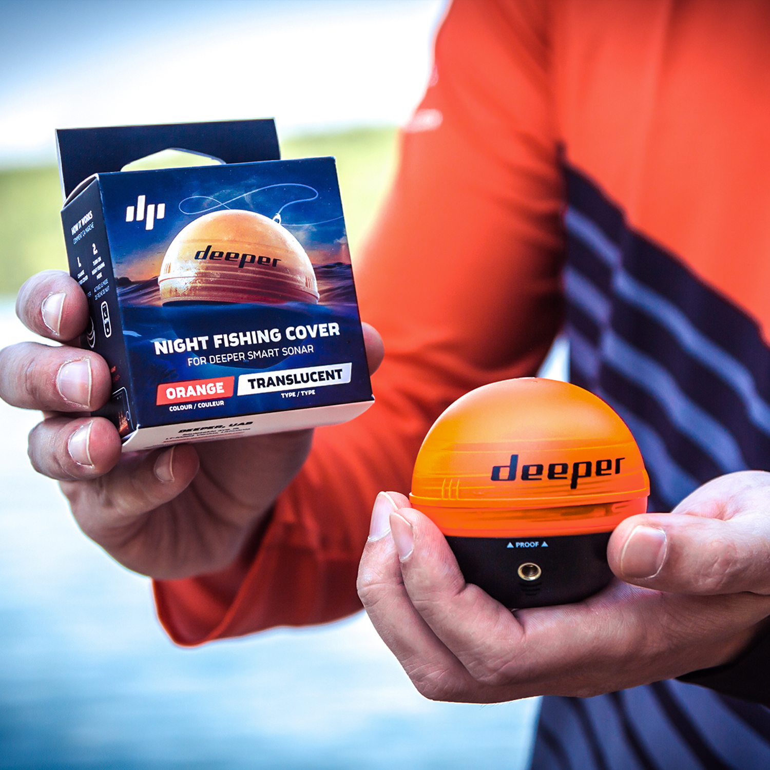 A Night Fishing Cover is engineered specifically for Deeper Smart Fish finder and Deeper Smart Sonars to maximize a device functionality and enable its usage at night. The Night Fishing Cover allows a bright flashing LED light to pass through its translucent orange cover, so it can be distinctly seen at a distance and in the dark. Which makes it impossible to lose Deeper device from your sight. Small and light Night Fishing Cover is simple to replace.