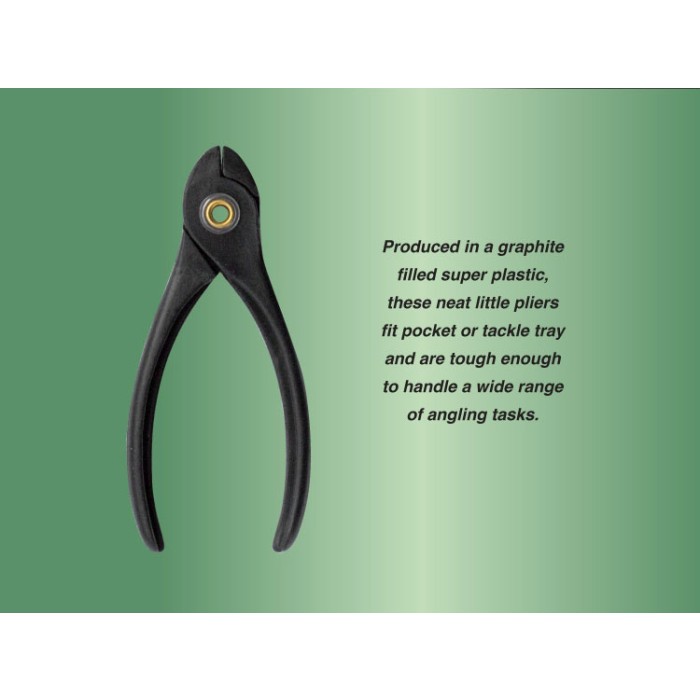 Produced in a graphite filled super plastic, these neat little pliers fit pocket or tackle tray and are tough enough to handle a wide range of angling tasks.