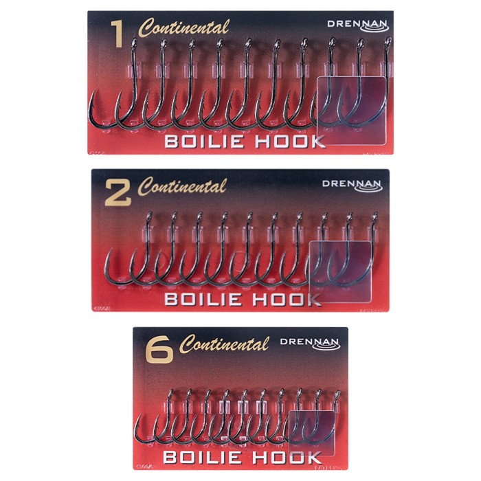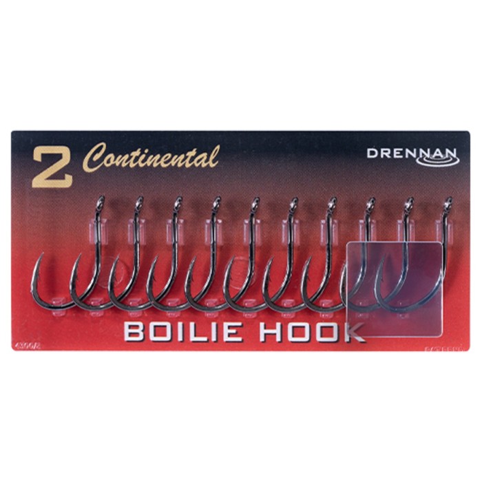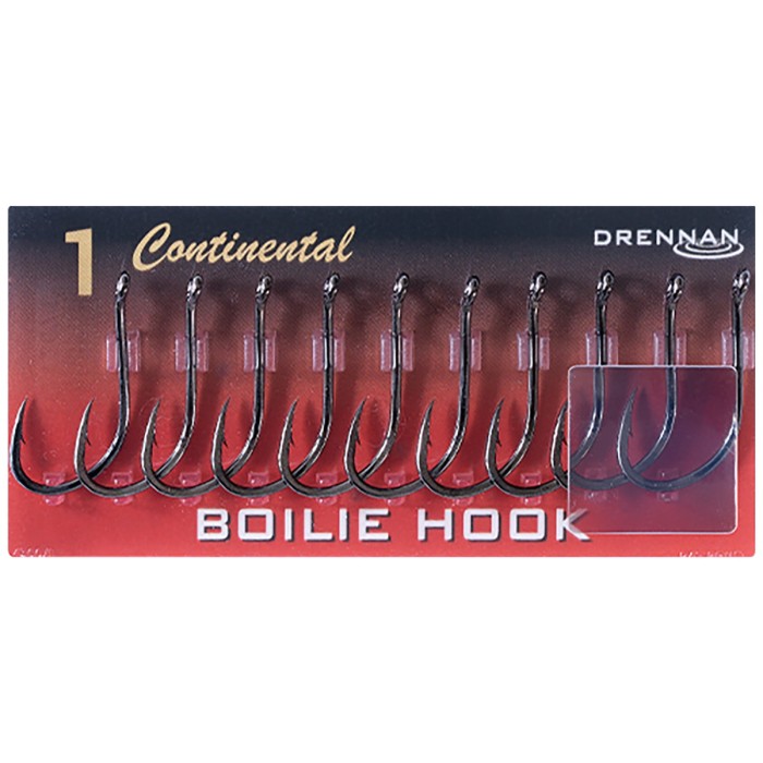 Drennan Continental Boilie Hook, Produced in heavy gauge super high carbon wire, exceptionally strong. Supplied in a box with a magnifying panel in the lid to enable you to examine the hook points and knots in detail. The Ultra reliable Drennan Continental Boilie hook. Super Sharp and mega strong. If there is a hook thats not going to let you down this is it!