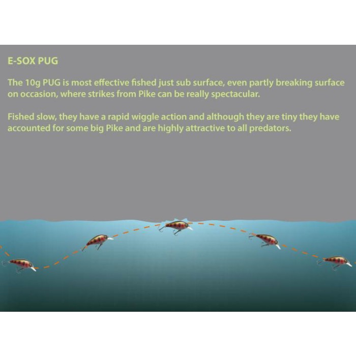 The 10g Pug is most effective fished just sub surface, even partly breaking surface on occasion, where strikes from Pike can be really spectacular.