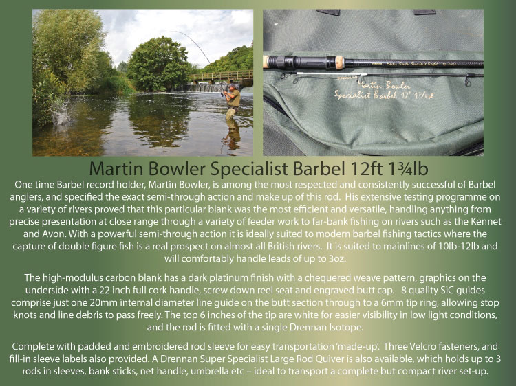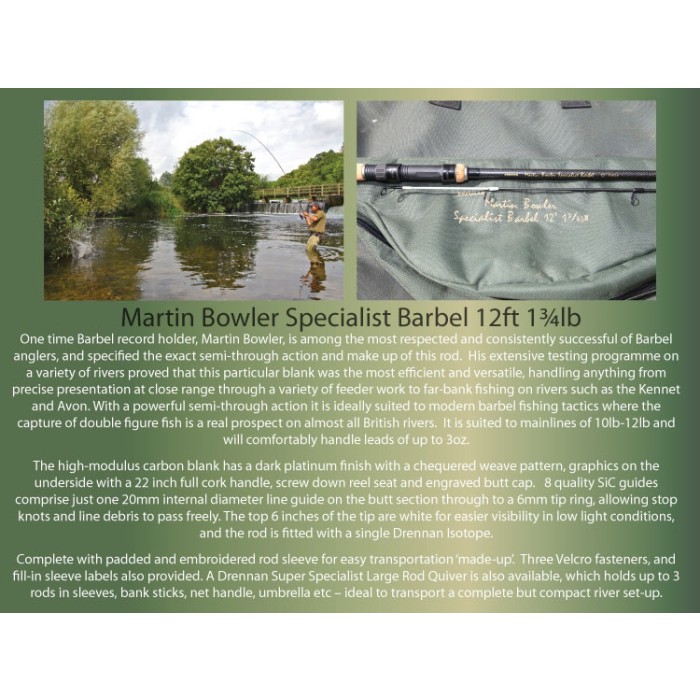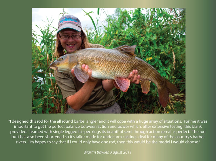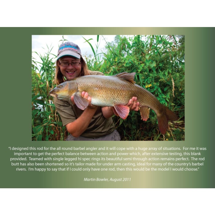 Martin Bowler is easily one of the UK’s best respected barbel anglers. One of the most consistently high performing specialist fishermen of his kind, Martin is a former barbel record holder and it is fair to say that he knows more than his share about this particular area of the sport. When Drennan decided it was time to expand its specialist rod range it knew that there was only one man for the job and Martin was more than happy to assist. The result was this: the Drennan Martin Bowler Specialist Barbel 12ft rod. When Martin set out to design this rod, he knew he wanted to create the ultimate all-round barbel rod which would be perfectly suited to the modern angler. This is why he worked closely with the Drennan team throughout the design and production process, and Martin personally ran the rod through his own extensive testing process before giving the Drennan team the final heads up to roll out the rod’s production. After all, anything that bore his name had to be up to his exacting standards – this rod certainly did not disappoint.