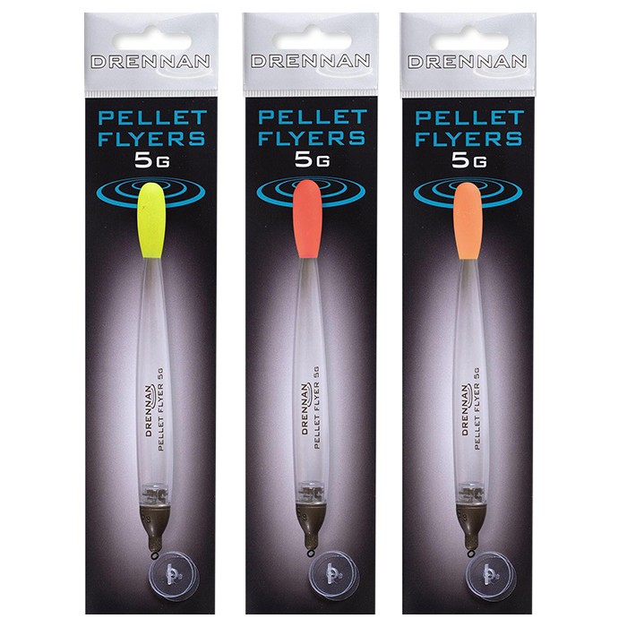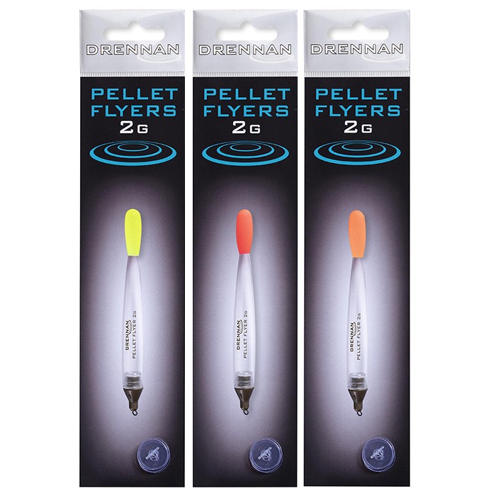 Pellet Flyers - our best ever pellet waggler float! Pellet Flyers are designed for shallow pellet fishing on small to medium-sized commercial waters. Being short and transparent, they are far less conspicuous than solid coloured-painted floats, which is a major advantage when pellet-fishing up in the water, very shallow. The blended, streamlined shape of transparent body and base weight ensures arrow-straight casting and a single, removable disc weight allows the angler to choose how much of the fluorescent tip is showing. Clear, plastic dive disc plus spares are supplied for each size of Pellet Flyer relevant to body diameter. These reduce float dive to an absolute minimum, avoiding fish scare and providing instant bite detection. Short bodied waglers generally oscillate in flight but even the smallest 2g Pellet Flyer at just 3.5inch (90mm) flies perfectly straight and true, improving casting distance and accuracy.
