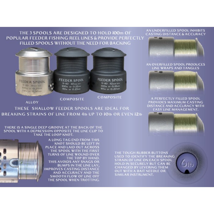The Series 7 represents Drennan’s first foray into the world of reel production and have been designed to perfectly complement the range of Series 7 rods. This is the Big Feeder 9-50 reel in the series. Supplied with an alloy main spool and two spare composite spools, this reel offers you fantastic value for money. This is a shallow spooled reel, ideal for holding 100m of 2lb-6lb lines, making it the ideal tool for most feeder situations. Thanks to the rubber indication on the front of each spool, you are able to load up each spool with a different line for ultimate bankside versatility. The spools are also fitted with a small indentation which has been purpose designed for housing your spool knot, ensuring you’re able to perfectly load up your spool each time.