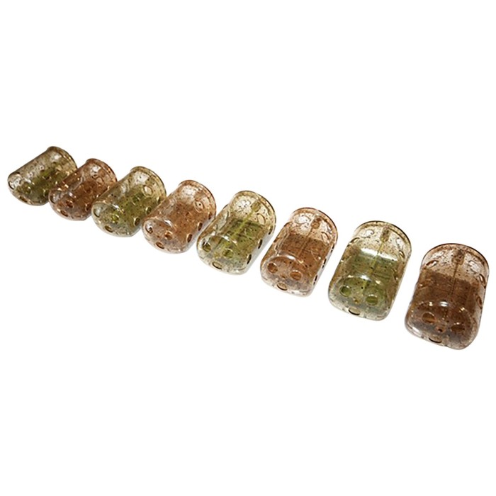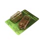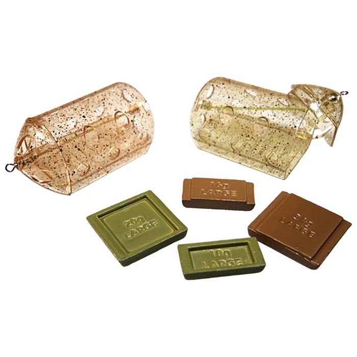 Each Vari-Weight pack contains 2 feeders - one light and one heavy. Both have a speckled finish for camouflage, one of which is green and the other is brown. The really clever part is that, between them, the two feeders contain 4 different interchangeable weights that slide in and out of their housing in the flat bottom part of each feeder, giving 9 different weight combinations! This makes it so much easier for the angler to get the loading just right.