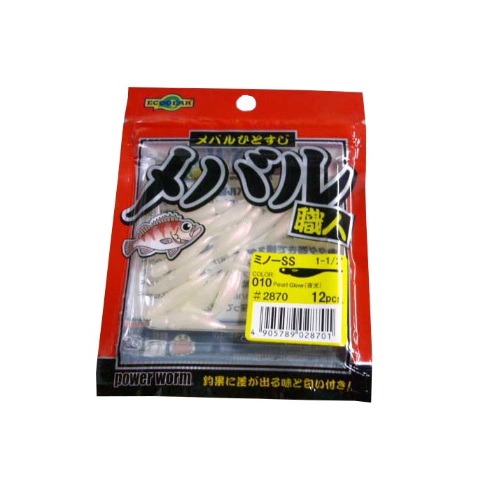 Ecogear Mebaru Shokunin MEBARU SHOKUNIN is a new line-up made specifically for the MEBARU (rockfish) angler. It includes 3 types of lures which are highly effective when targeting rockfish, "MINNOW SS", "STRAW TAIL GRUB" and STRAW TAIL GRUB SLIM". They can be used to imitate a wide range of bait, and can be swapped around to suit the fish activity level. The colour line up has been specially selected in collaboration with rockfish specialist anglers from all over Japan. Care has been taken to keep the lure on the hook, by using special non-salted material. MEBARU SHOKUNIN is a must have for the serious rockfish angler!