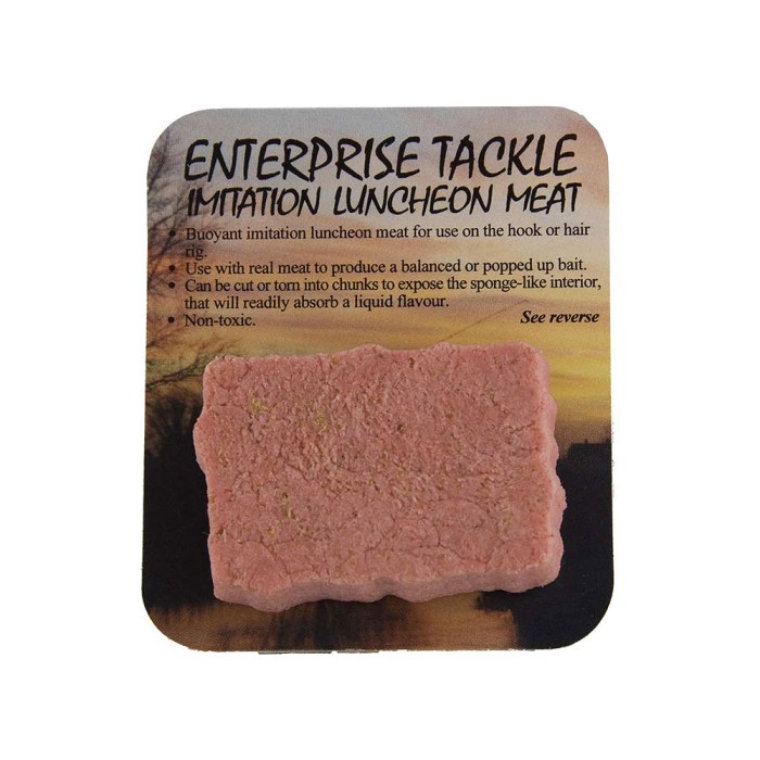 Our imitation luncheon meat is extremely buoyant and soft, yet is tough enough to stay firmly on a hook or hair rig during casting, helping to prevent real meat from flying off. It is also resistant to the unwanted attention of nuisance species including Crayfish. Simply cut or tear a piece from the block and hook lightly, ensuring most of the hook is exposed. The tough outer skin can be picked away if required to produce an irregular ragged-look bait that can be soaked in a flavour of the anglers choice. Ideal to use in conjunction with a real piece of meat to give added buoyancy and act as a stop.
