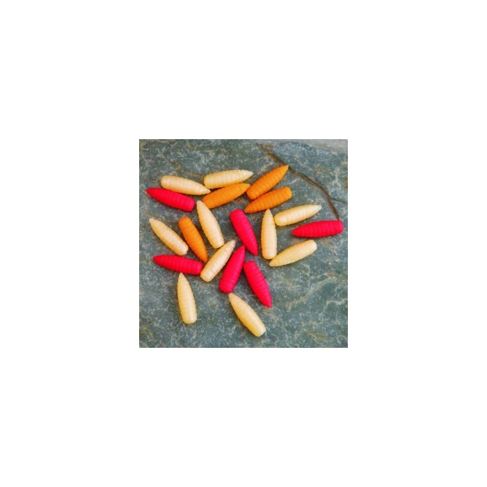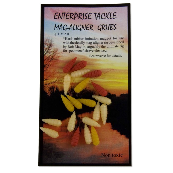 Our Mag-Aligner grubs have been developed specifically for the rig to Robs exact specification. Made from a much harder material than our imitation maggots to maximise the line aligner effect, they are also straight in appearance which helps when threading them on the rig.
