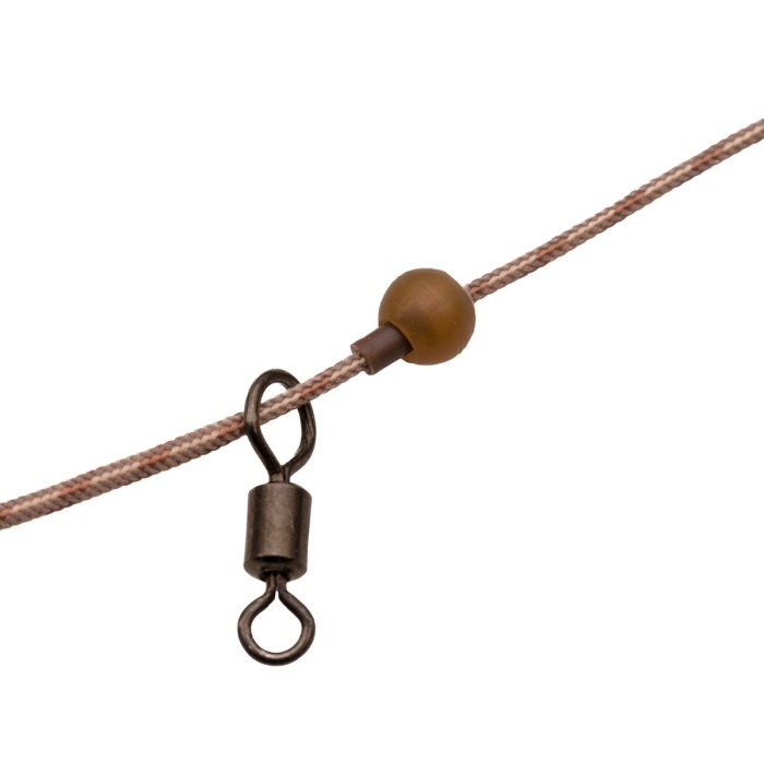 The small bore bead has a central membrane which can be pierced with a splicing needle and threaded onto the leader. This provides a snug interference fit directly on the leadcore, which will slide down under minimal pressure. Perfect for fishing semi fixed chod rigs up the leader or for preventing the hook on a chod rig from coming into contact with the lead by setting the bead three or four inches up the leader.