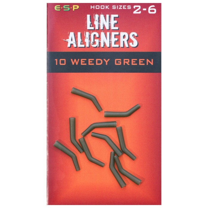 With a perfect balance of rigidity and flexibility, Line Aligners extend the hook shank at exactly the right angle to maximise hooking potential and then flex enough to avoid interfering with direct in-line pull and a secure hook hold. Available in two sizes for hooks from 2s to 6s and from 7s to 10s and in three colours, weedy green, camo brown and choddy silt.