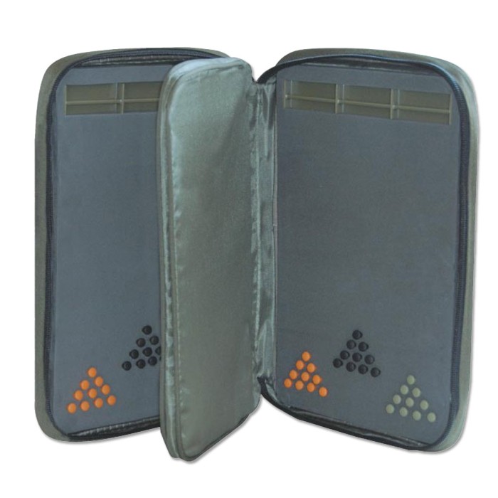 This Drennan ESP Rig Wallet features a slimline design which makes for easy storage of all your rigs. It has twin foam boards with a padded central divider and can store up to 60 rigs. Drennan ESP Rig Wallet is supplied with 60 custom made pins in 3 colours for colour coding and easy identification. Appox. dimensions 210mm x 330mm.