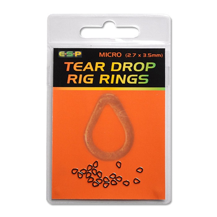 Teardrop shaped rig rings that complement the ESP Shank Stops perfectly. Hair or bait floss knots locate securely in the apex of the ring, leaving the wider more rounded end of the ring free to run smoothly on the hook shank or d-rig loop.