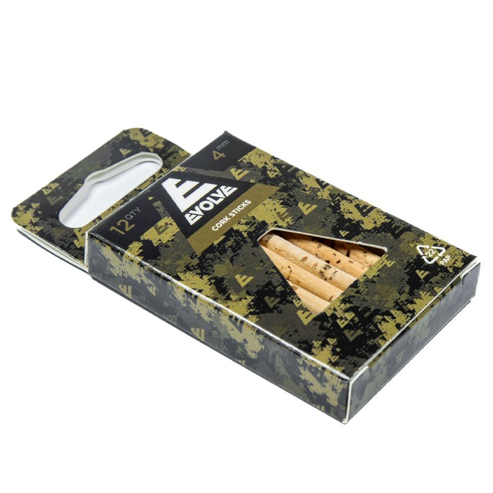 Evolve 4mm Cork Sticks are designed to perfectly compliment the Evolve 4mm Drill. Can be used with Evolve 4mm Drill to create balanced and pop-up presentations. Can also be used with a variety of other baits not requiring drilling (e.g. maggots) to achieve balanced and pop-up presentations. 12 sticks per pack.