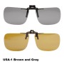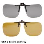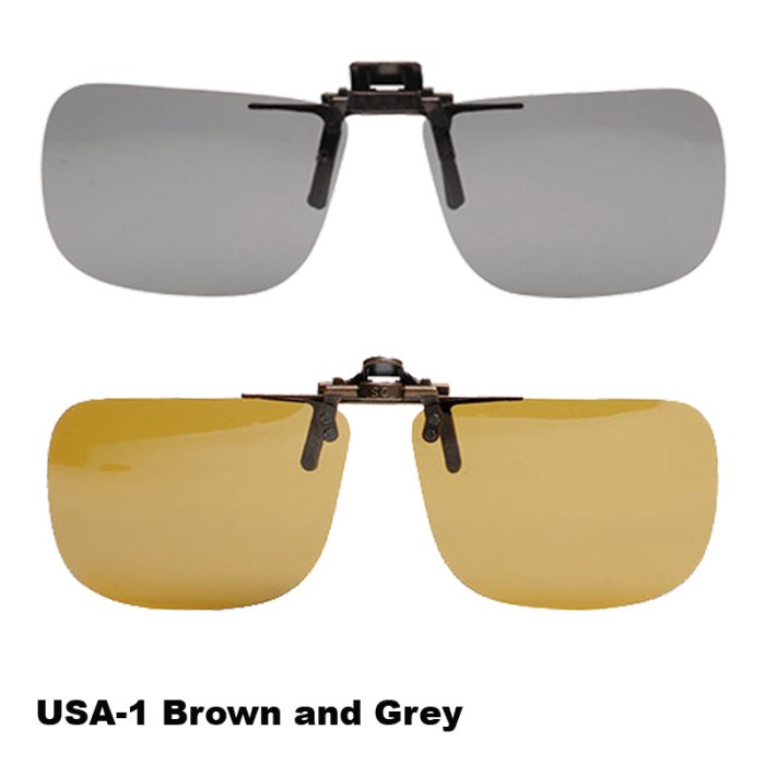Side clip style clip on sunglasses. Genuine Polarized lenses reduce glare from light reflecting on water, and improve your vision. Lens dimensions: Width 55mm, Height 40mm.