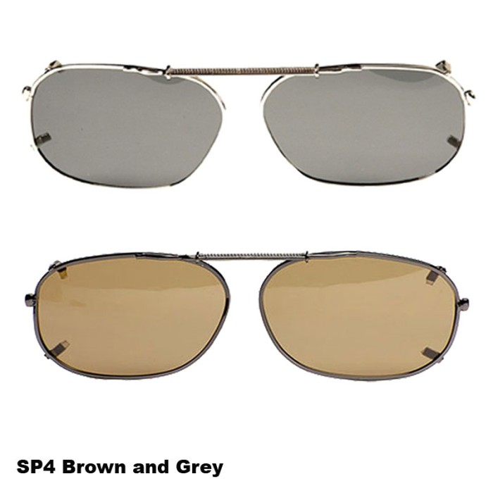 Side clip style clip on sunglasses. Genuine Polarized lenses reduce glare from light reflecting on water, and improve your vision. Lens dimensions: Width 52mm, Height 30mm.