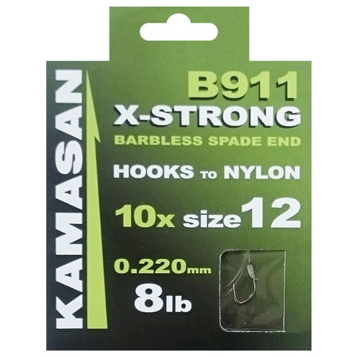 In recent years Kamasan has greatly increased its Hooks to Nylon range to keep abreast with the latest demands from the UK anglers. As the commercial carp waters became the most popular fishing venues in the UK, there was an urgent need for a range that would adequately deal with the size of fish being caught. Commercial waters continue to grow in popularity, and as their popularity grows so do the target fish. Consequently, Kamasan has released a large selection of new Hooks to Nylon to deal competently with these monster fish. There are even a couple of styles within this new range that come complete with bait bands already tied on a hair rig and, as with all Kamasan tied hooks, broken hook lengths will be reduced to a memory, as they are all more than adequately prepared for your chosen target.