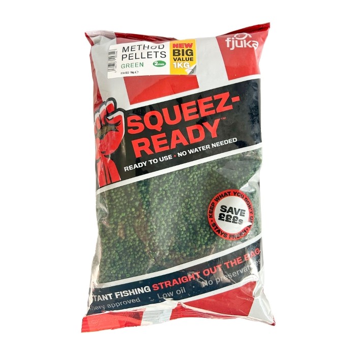 Fjuka Squeez Ready Method Pellets – Green are convenient, ready‑to‑use method pellets designed to make feeder fishing quick and efficient. Supplied in Fjuka’s practical clear packet, they allow coarse and match anglers to use pellets easily without the need for soaking or mixing.