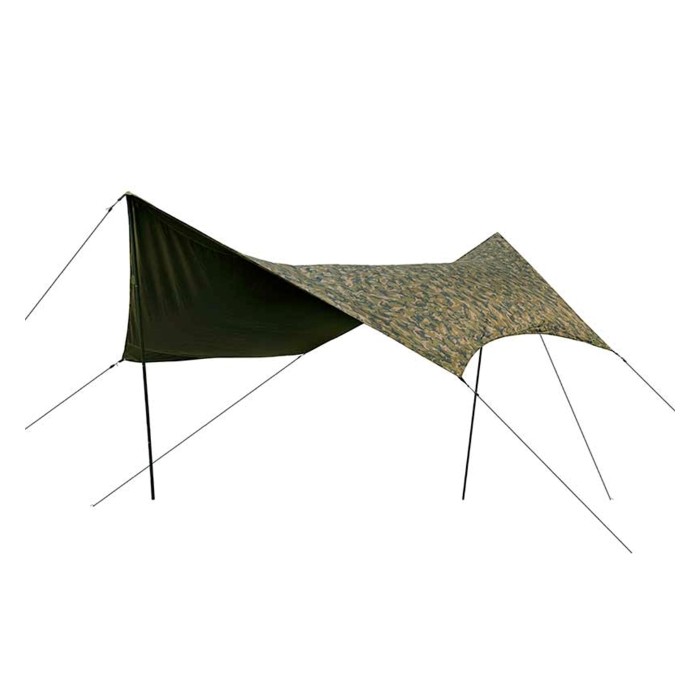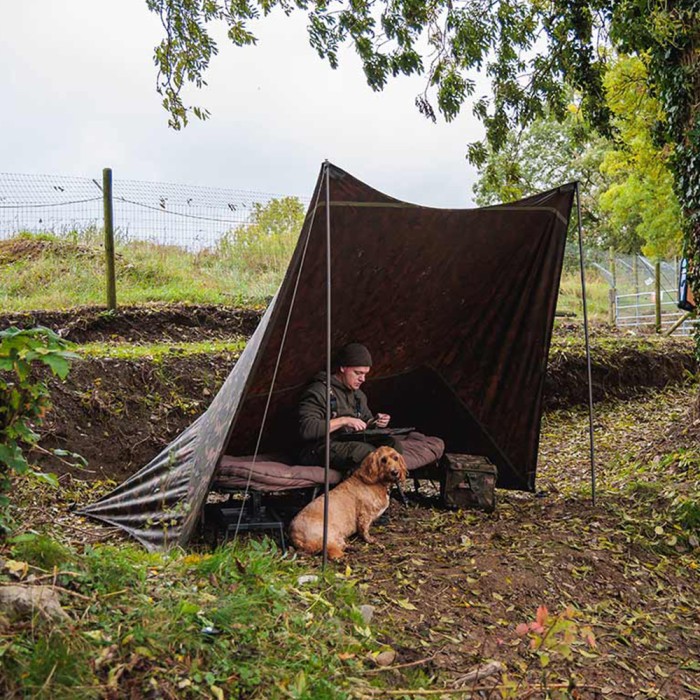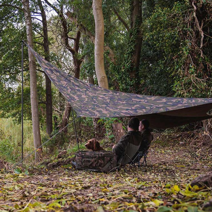 Designed to shield you from both rain and sun, it keeps your gear and shelter dry and comfortable. Crafted from 100% polyester with a khaki laminate finish, it reduces light penetration and provides full 100% waterproof protection, all while remaining lightweight and compact for easy transport.Its versatile design makes it perfect for a wide range of activities. Whether you're protecting your bait and tackle, extendingBivvies, or creating a sheltered outdoor cooking area, this tarp is your ideal companion for all your Carp Fishing sessions. The reinforced corners, complete with eyelets, allow you to secure the tarp with storm cords,or tent pegs and give more strength where the tarp is likely to contact the ground.