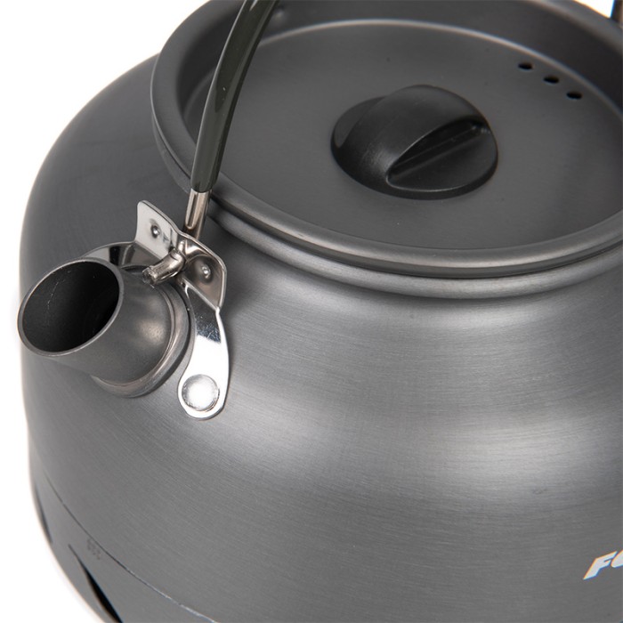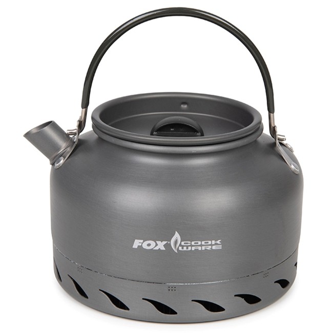 Fox Cookware Heat Transfer Kettles, lightweight hard anodized aluminium kettles featuring heat Transfer technology. Operating with 30% more efficiency than a standard kettle saving you money by getting more use from a standard gas cannister. Available in 0.9l and 1.5l versions and supplied in mesh drawstring bag.