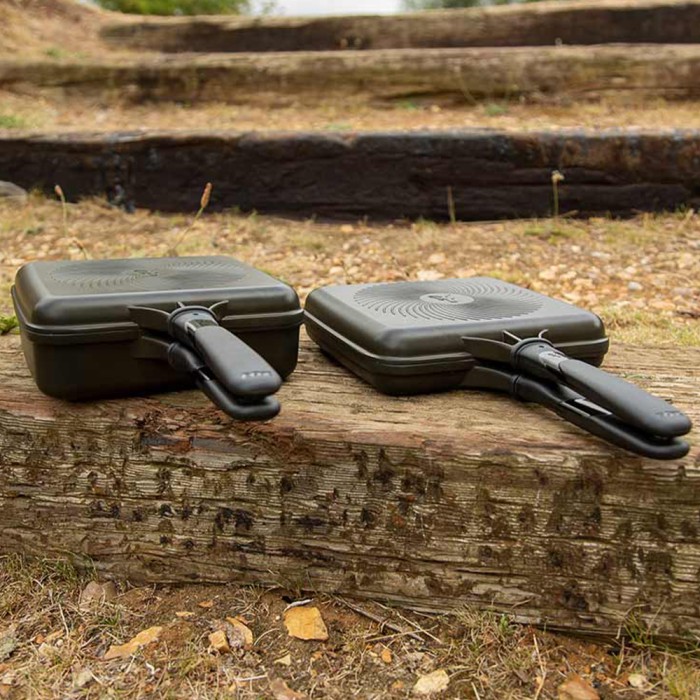 Hinged and removable so each pan can be used independently.
