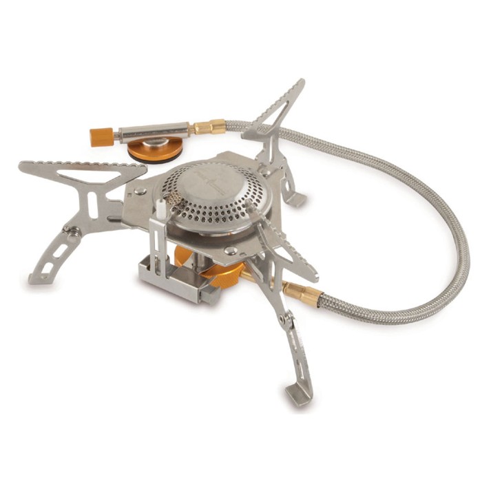 The Fox Cookware Standing Stove is a compact and durable gas stove. Built in ignition, adjustable flame control and a hardcase storage box complete the Fox Cookware Standing Stove.