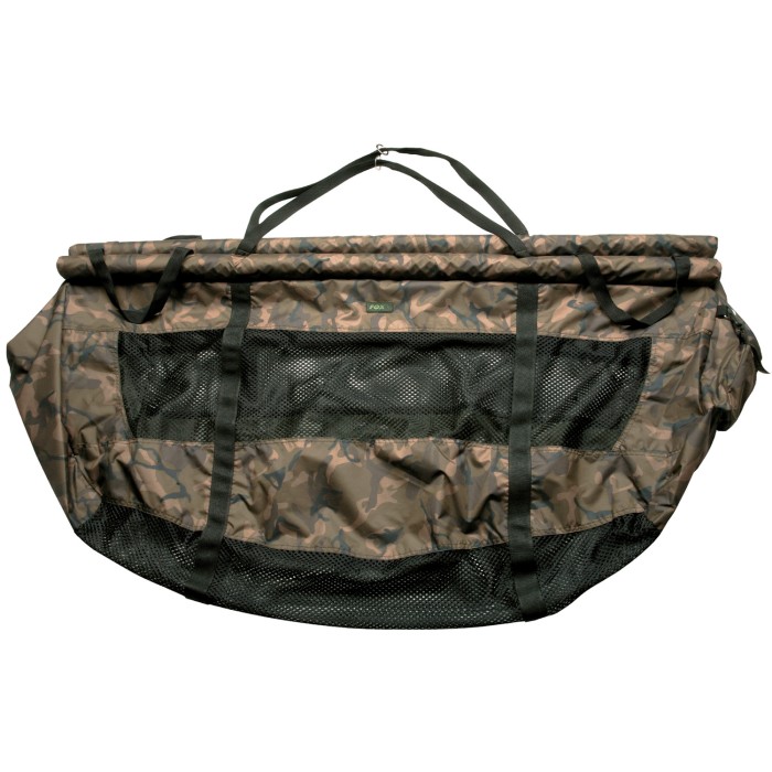 Based on original STR Weigh Sling design, which has proven to be one of the most popular in Europe. Features unique Fox Camo pattern. Measures 124cm long by 39cm wide with a drop of 75cm. Built around full length floats which support a lightweight, fish-friendly mesh. Top mesh panel allows you to view fish always. Full length double zips secured by a dog clip to ensure security. Sculpted to house and fully support fish centrally during weighing. Zip baffles to fully protect fish. Double grab handles each end for safe lifting and carrying. Reinforced stitching on all pressure points. 3m heavy duty sack cord supplied in an external pocket. Supplied in nylon sleeve / stink bag. Mesh venting allows rapid water drainage for quick, accurate weighing. Double weigh handles with centre locating loops.
