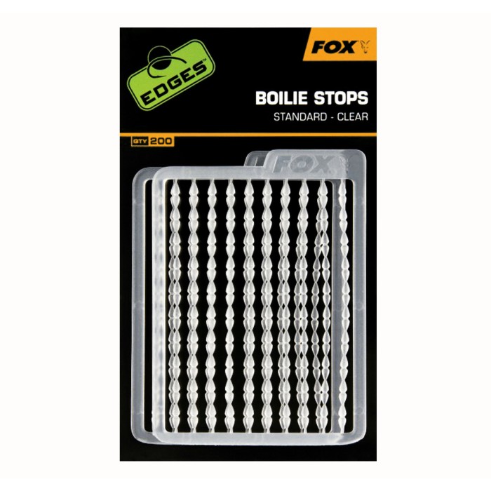 The Fox EDGES Boilie Stops are both versatile and economical hair stops that are available in clear colouring to avoid ruining bait presentation to the fish.