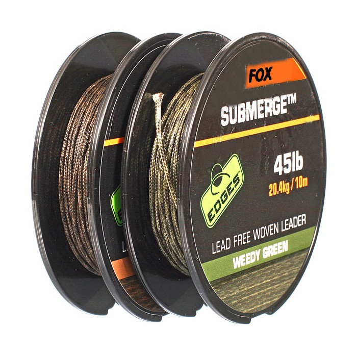 Submerge Leadless Woven Leader: Submerge is a heavy, supple, fast sinking leadless leader which can be spliced like leadcore and is supple enough to hug the contours of the lake bed. Available in Weedy Green and Gravelly Brown in 30lb & 45lb breaking strains.