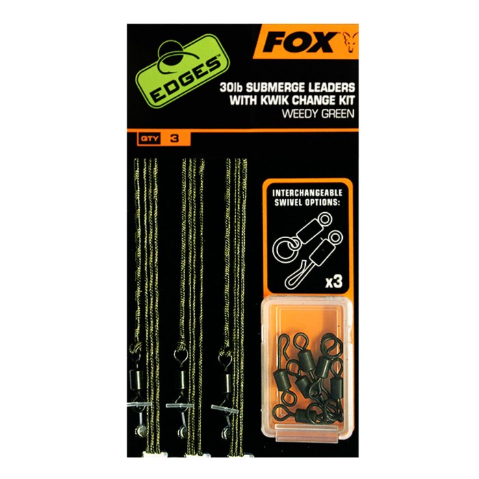 Each leader is 750mm, spliced at both ends and fitted with a size 7 swivel which is attached via the loop method. This allows the swivel to be removed and replaced with the Kwik Change Swivel or Flexi Ring Swivel supplied.