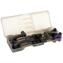 New black finish. Illuminates when connected to alarms with power out facility. Head display mimics Micron LED to signal drop backs. Streamlined Micron attachment tabs. Rubber shock absorbers on bottom of head. Widened front end for increased visibility. Spring loaded adjustable tensioning system. Fixed line gate system. 80g sliding collar weight. Light reactive acrylic indicator head. Betalight slot.
