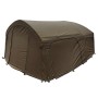 Fox Frontier II X Deluxe Extension gives you an extra 1.5m covered space outside your main bivvy. With the rear of extension covers entire bivvy giving a full twin skin to improve insulation and reduce condensation. With four rear panels completely removed creates a shaded area out the front of the bivvy. Alternatively the side solid panels can be completely removed or can be replaced with mozzy mesh panels. The front panel can be completely removed or replaced with a front mozzy panel. Supplied with two front panel door options, clear PVC and solid. A Heavy duty groundsheet is also included.