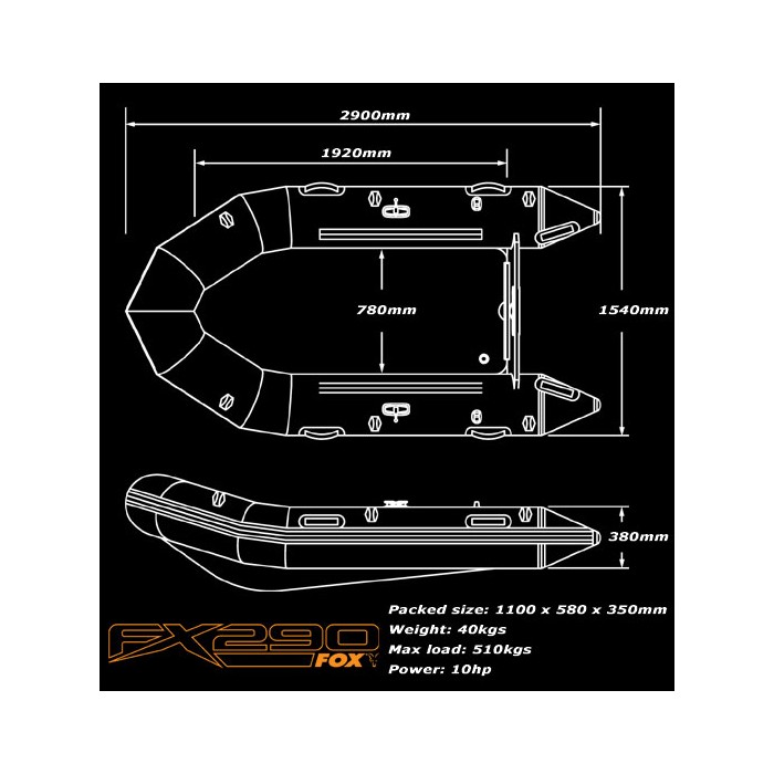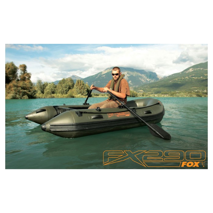 2.90m green air mattress floor, additional grab handles, fully adjustable rail seat, reinforced side and under rails for maximum protection, black oars, square paddles for better performance, stainless front towing/anchor point, solid back for stable engine mounting
