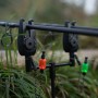The D-Tec Sensing System/Roller wheel technology boasts for clear, consistent bite detection. The rubber inlays to protect your rod and hold it in place on savage bites to avoid losing your rod and the on/off toggle switch and knurled locking collar are additional great features of the alarm.