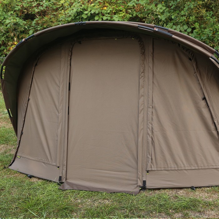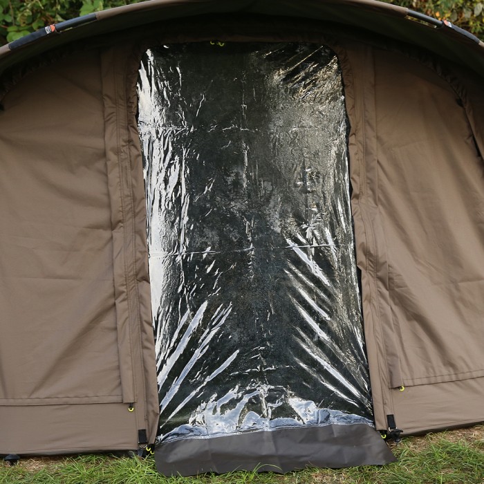 The Fox Retreat+ One Man Bivvy has been designed in order to provide you with the maximum internal space possible, leaving you with loads of room to set up your bedchair and pack in all your luggage. With this bivvy on the bank you’ll never have to feel restricted with the amount of gear you can bring. This make sit an ideal option for the angler who likes to head to the continent for their fishing, as it has more than enough space to store a weeks worth of tackle, clothing, cooking equipment, and bait. The front panel of the bivvy can be completely removed, transforming it into a spacious day or summer session shelter. The door comes with three infill options, including a full solid door, a PVC window, and a mozzie mesh insert. These ensure that you can enjoy your angling year round, no matter the conditions on the bank. Each door option comes with two way zips, allowing for barn-door style opening for a letterbox view over your swim. Mozzie mesh vents on the front and rear of the bivvy make it ideal for all your summer angling.
