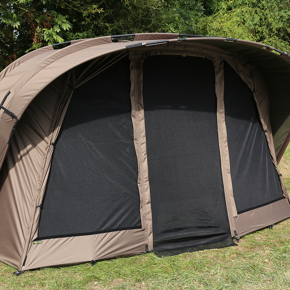 This is an incredibly versatile bivvy and it comes with a mosquito mesh inner dome for all your summer angling needs. This mosquito mesh doesn’t come as standard, although it is available to purchase in a combination package with the main bivvy. This means that you can invest in the bivvy as a stand alone item before purchasing the inner dome at a later date, or you can take the plunge and buy both together for a small saving. This mosquito mesh simply clips into your main bivvy, allowing you to ensure that you’re completely protected from any nasty bankside bug bites, and it comes with its own lightweight groundsheet. This groundsheet can be completely removed, too. Also available for purchase separately is the extending winterskin overwrap. This transforms the bivvy into a dual skin all-weather outfit that is perfect in even the coldest months. What’s more, this overwrap adds a porch section to your bivvy, giving you even more space.