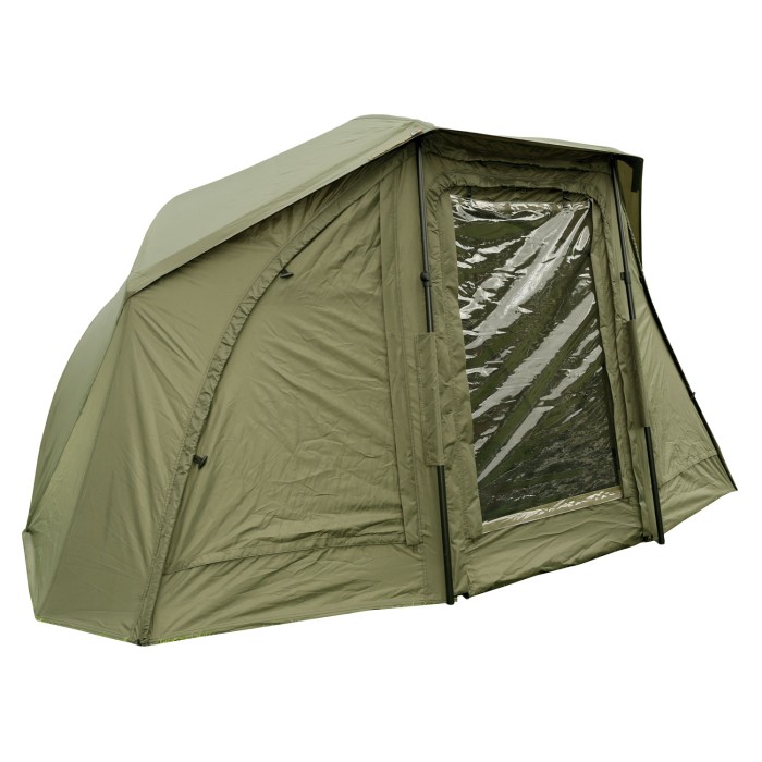 Fox Royale Brolly System has a new, space-saving spoke design to push the spokes higher up into the brolly to give anglers more usable space. With a full removable front system, mozzy mesh sides and window, will give the angler full view of his rod set up.