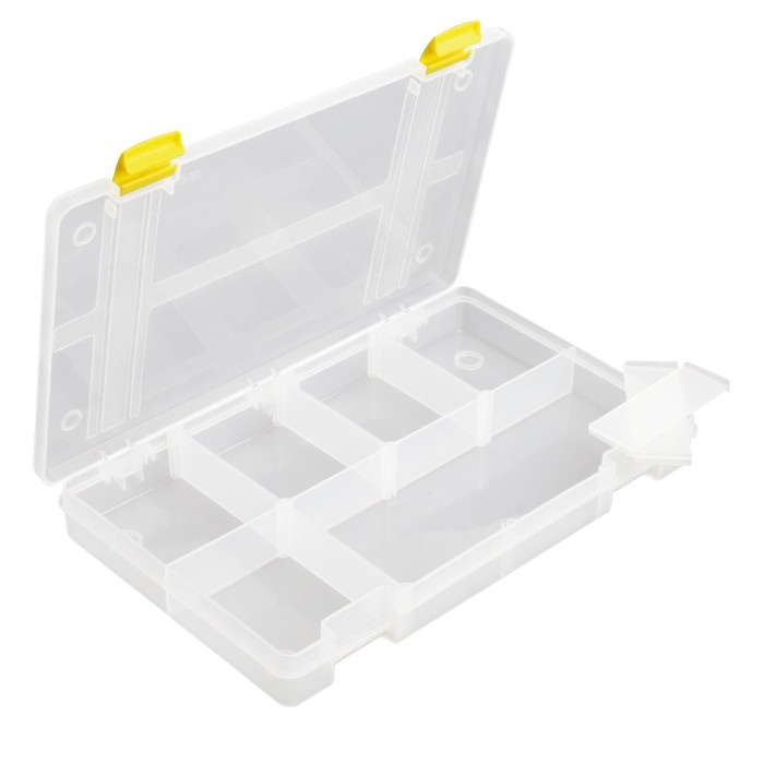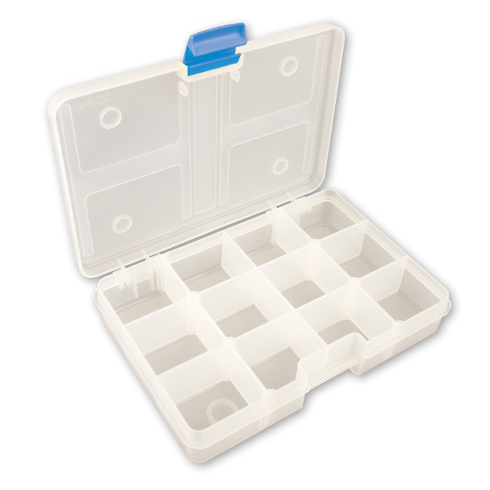 Fox Stack N Store Shallow Boxes measure just 43cm in depth. Recesses in the lid and specially moulded bases allow the boxes to be stacked one on top of the other creating a neat storage system. The 8 division is ideal for slightly bigger lures.