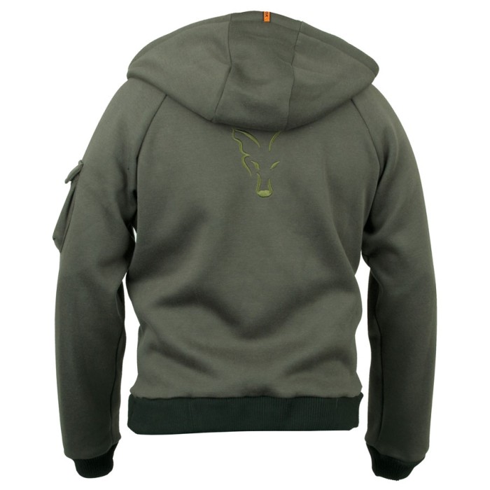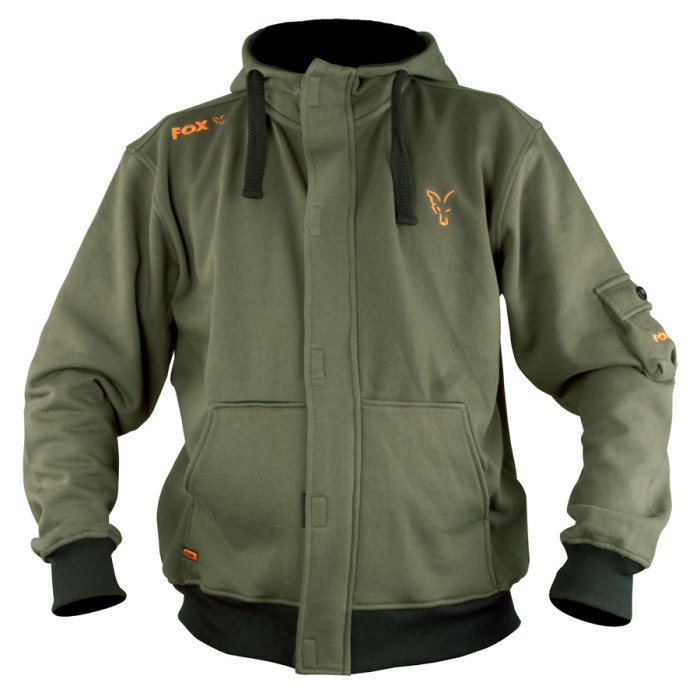 External baffles run from chin to base down the zip to stop the flow of air down the centre of your body. Deep front pockets ensure that there’s always somewhere for you to tuck your hands when the wind picks up and they offer you additional storage for all those items you like to keep close to hand on the bank. The Superweight Hoodie also comes fitted with an arm pocket which has been purpose designed to hold your Fox NTXr receiver, but it will also comfortably hold any other bite alarm receiver that you own. The Fox Superweight Hoodie is available from medium to XXXL and it comes in a stylist Ven-Tec green.