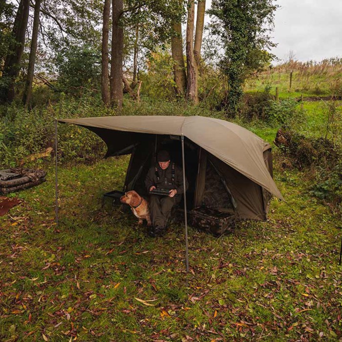 Designed to shield you from both rain and sun, it keeps your gear and shelter dry and comfortable. Crafted from 100% polyester with a khaki laminate finish, it reduces light penetration and provides full 100% waterproof protection, all while remaining lightweight and compact for easy transport. Its versatile design makes it perfect for a wide range of activities. Whether you're protecting your bait and tackle, extending Bivvies, or creating a sheltered outdoor cooking area, this tarp is your ideal companion for all your Carp Fishing sessions. The reinforced corners, complete with eyelets, allow you to secure the tarp with storm cords, or tent pegs and give more strength where the tarp is likely to contact the ground.