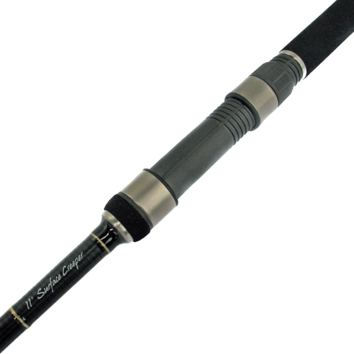 Blanks made from 40t SEA-3k with a fully woven carbon finish as used on the E-Class carp rods and with the Perdurable finish make these rods a joy to use. There are 5 models all built with high quality full EVA handles, a Clone seat with same finish as the rod and all stainless steel fittings. The Surface Creeper is a dedicated floater rod designed with a very soft, sensitive tip to handle small controllers and light nylon hook links and at 11 it is still a useful stalking rod especially when free-lining.