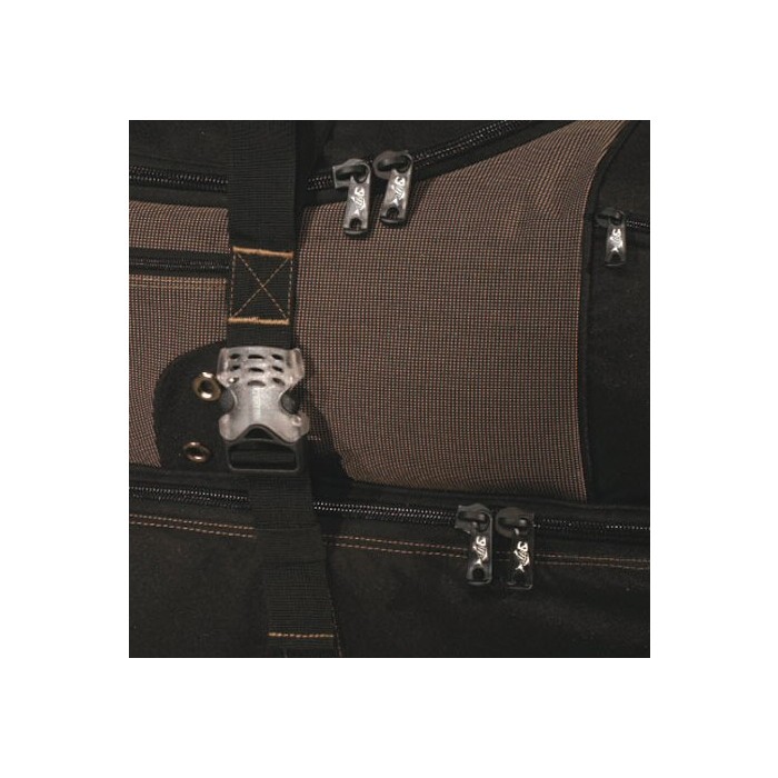 Features oversize buckles, webbing and zippers for durability and ease of handling, easy access U shape top opening, dual end pockets for added storage, expandle lined end pockets for separation of wet and dirty clothes.