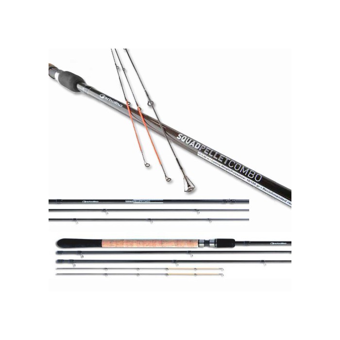 The Squad Pellet Combo is 2 rods in 1! Built from IM carbon this rod has one butt section and a waggler tip section to create a 12' 2 piece pellet waggler rod as well as a feeder rod carrier section and 2 quiver tip tops to make a superb 12' commercial carp feeder rod.