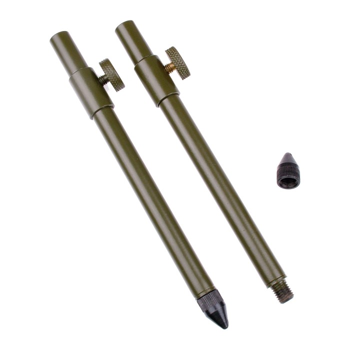 A pair of 6"(15cm) Matt Olive Green extending banksticks designed specifically for the stalker on the move.Strong yet lightweight high tensile Aluminium construction.Sticks can be used individually for a low rod set-up.