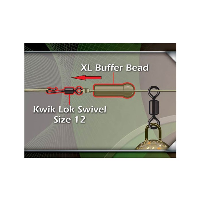Gardner Target Kwik Lok Terminal Pack, Target Kwik Lok Terminal Packs include all the items you need to create quick change running rigs. Included in every pack are five of size 12 Target Kwik Lok and the Target XL Buffer Beads to match. All the components have been designed to compliment one another in use The XL Buffer Beads have been designed to work with size 12 Kwik Lok Swivels and to sheath the swivel, protect the knot and retain the hooklink whilst keeping a hinge that aids presentation with stronger hooklinks. This is done by having the internal bore slightly shorter than the full length of a size 12 Kwik Lok swivel. In practice this means that by pulling the swivel out the bead you can change hooklinks easily and quickly, and when the Kwik Lok Swivel is pulled back in to the bead the hooklink is secures in place without need for an Anti Tangle Sleeve. With this simple, yet effective system another benefit is there is still a little free movement between the looped hooklink and the bead. This means that means that when you loop stiffer hooklinks (like skins and Fluorocarbon) the hinge point at the connection offers the hook bait a little more unhindered movement and more natural presentation. By using the tried and tested Kwik Lok System on a swivel you do not compromise strength and is recommended over plastic style connectors that can burr or cut. The Kwik Lok Terminal pack offers excellent value for money as you no longer have to buy a full packet of each of the components instead all that is needed is one pack and your ready! As anglers we all know how important it is to keep all the components that make up our terminal tackle as camouflaged and subtle as possible and having good camouflage colours and scaling down the size of items like these Sleeves helps you create a more effective and less obvious set up. All the swivels in the Target range features Gardner Tackles anti-glare finish to help hide them from fish and make them less visible in clear water conditions. Target XL Buffer Beads are available in two excellent colours Natural Green and Natural Brown.