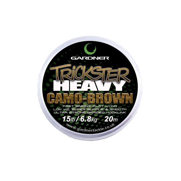 Fast-sinking, heavy, braided hooklinks are favoured by many big fish anglers in the know because it will naturally settle flush to the lake or river bed. By combining this with an excellent camouflage colour, we have created a very special hooklink that has proven hugely successful during development and immensely popular with some of our field testers. Flat Lying It is superbly strong, using ultra-reliable Dyneema for a fine diameter and superb knot strength, with a smooth finish and soft, supple feel. This flexibility not only ensures unrestricted free movement of the bait at the critical moment that the carp inhales the hook bait into its mouth, but also helps it lay down tidily, out of the way where it is less likely to be noticed by one of these tricky-to-catch, cautious feeding fish. Trickster Heavy excels as an alternative to the skinned style hook links that the carp see very regularly on the lake bed, and comes into its own when used for solid PVA bagging, presenting a critically balanced bait over light weed, or for super subtle bottom bait presentations. Top Tip try a short Trickster Heavy hooklink when fishing particles on, as you can go short without impairing the hook baits movement. Fast Sinking Extremely Supple for fined down set ups Available on 20m Spools in 15lb, 20lb and 25lb Colour: Camo fleck weave The new generation range of braided hooklinks have been designed and tested to guarantee the finest standards; improving on other equivalent materials already on the market. With our improved Interweaving technology we have been able to balance and optimise the key attributes diameter, strength, softness and colour like never before, to create truly deadly hooklinks, proven in the art of deceiving wary fish.