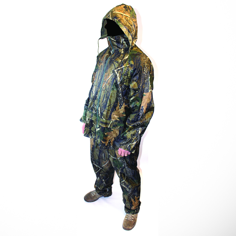 This is a new light weight waterproof two piece camo suit. Packs away nice and compact for easy storage yet provides full wet weather protection. A great item to keep in your carryall/rucksack at all times.