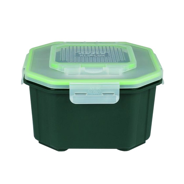 These new 1.4pt, 2.4pt and 3.4pt Klip-Lok Bait Boxes have hinged inner Flip Top lids, which are now perforated to keep live baits in tiptop condition. This format is perfect when using maggots, pinkies, squatts and worms, preventing wet or lively bait from escaping. The Flip Top concept features a clever catch mechanism that allows the inner lid to be left slightly ajar, providing fast opening and extra air circulation, while the lid can be clicked firmly shut when a more positive seal is required. Other unique features include totally secure Klip-Lok lid closure, plus a unique octagonal shape that prevents other bait box lids or bases from accidentally fitting any of the components.
