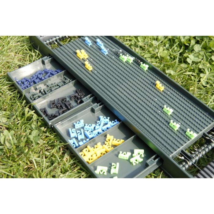 The Prodigy Rig Board is a revolutionary new concept in hook length storage. It provides you with a far more durable anchoring system, comprising special colour coded Tension Pegs that lock hook lengths (or rigs) exactly where you want them. Double hook retaining bars at either end, combined with soft rubber line protection channels, allow more versatile storage of short, medium or long rigs.