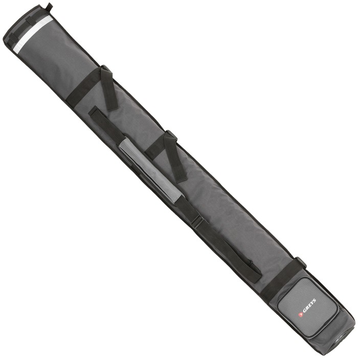 An all-purpose single session quiver to carry shore and boat rods. Offers instant access to the rods via a full-length side zip. Also fitted with a fully adjustable shoulder carry strap, additional brief case type carry handle, rod rest securing straps, a rod bag pocket, and protective base. Carries reflective tape for night-time location.