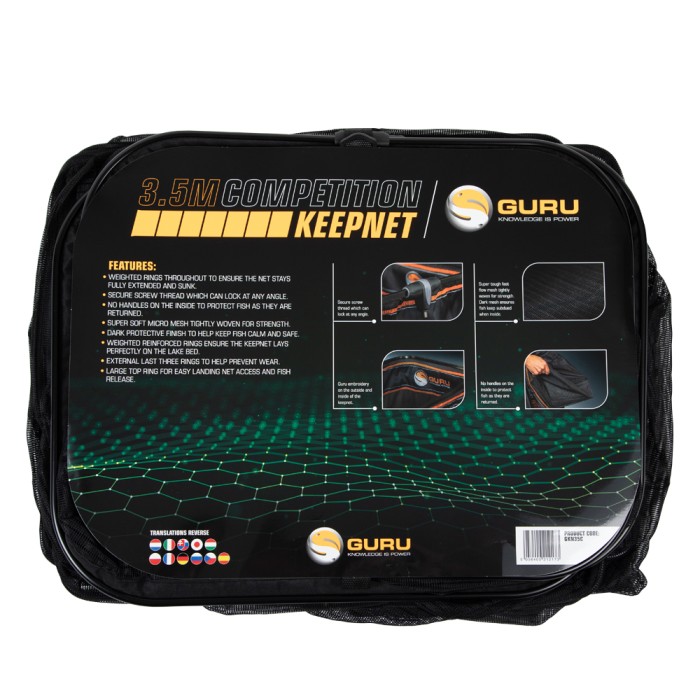 The Guru Competition 350 Keepnet 3.5m is a super versatile keepnet that has been designed to be used across a wide range of different venues and fishing situations. This is the perfect keepnet option for anglers fishing natural venues with steep high banks that require a longer length keepnet for ultimate fish safety or who fish internationally ran match fishing events as the 3.5m length meets the FIPSED keepnet length rules and regulations.