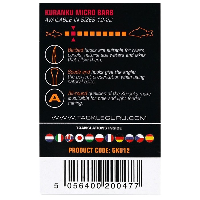 The Guru Kuranku Barbed Fishing Hook is ideal for natural-style venues where a barbed hook is needed. The hook's unique shape and durable black nickel material ensure that it maintains a high degree of strength, while maintaining a fine wire diameter that keeps the hook lightweight. The advantage of lightweight hook patterns comes in handy when fishing for bream, skimmers, and other finicky silverfish.